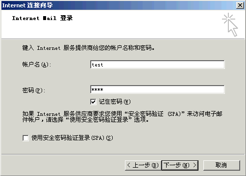 6〕 输入你的yourdomain.com的帐号名和密码;点击下一步,如下图所示